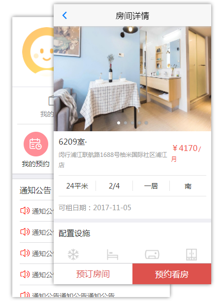 在線看房;房源查找;房源預約;公寓資訊發布;